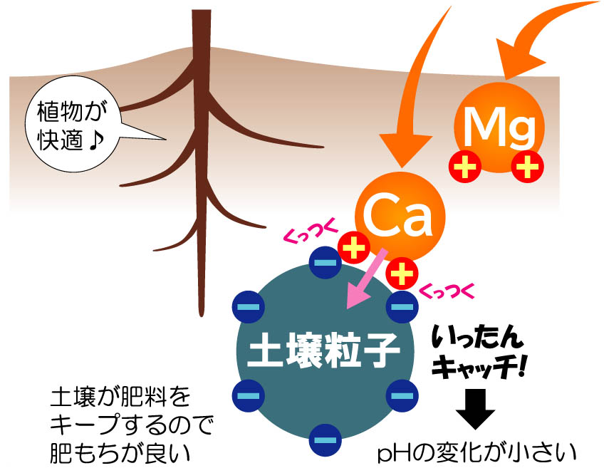 ①土壌の“クッション力”が増える(緩衝能の向上)